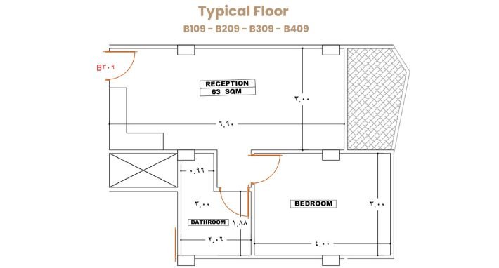 one bedroom in Grand Rock Resort -the apartment size 63 m²