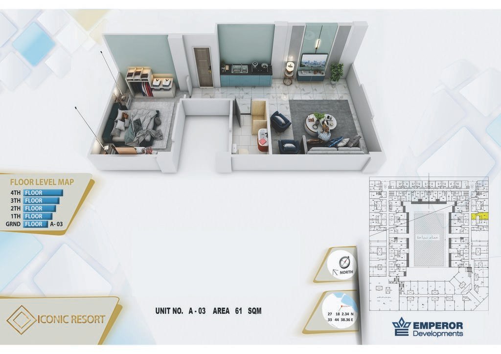 One bedroom in Iconic Resort by Emperor Develompments -the apartment size 61 m²