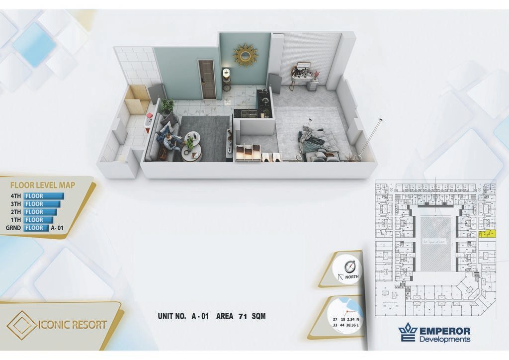 One bedroom in Iconic Resort by Emperor Develompments -the apartment size 71m²