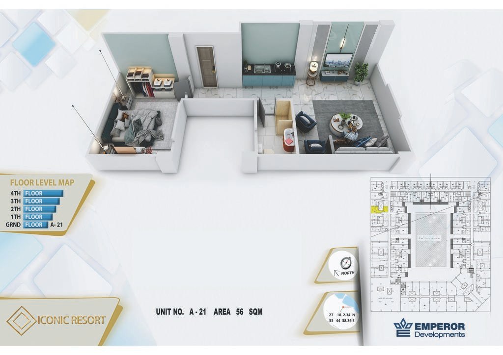 One bedroom in Iconic Resort by Emperor Developments -the apartment size 56 m²