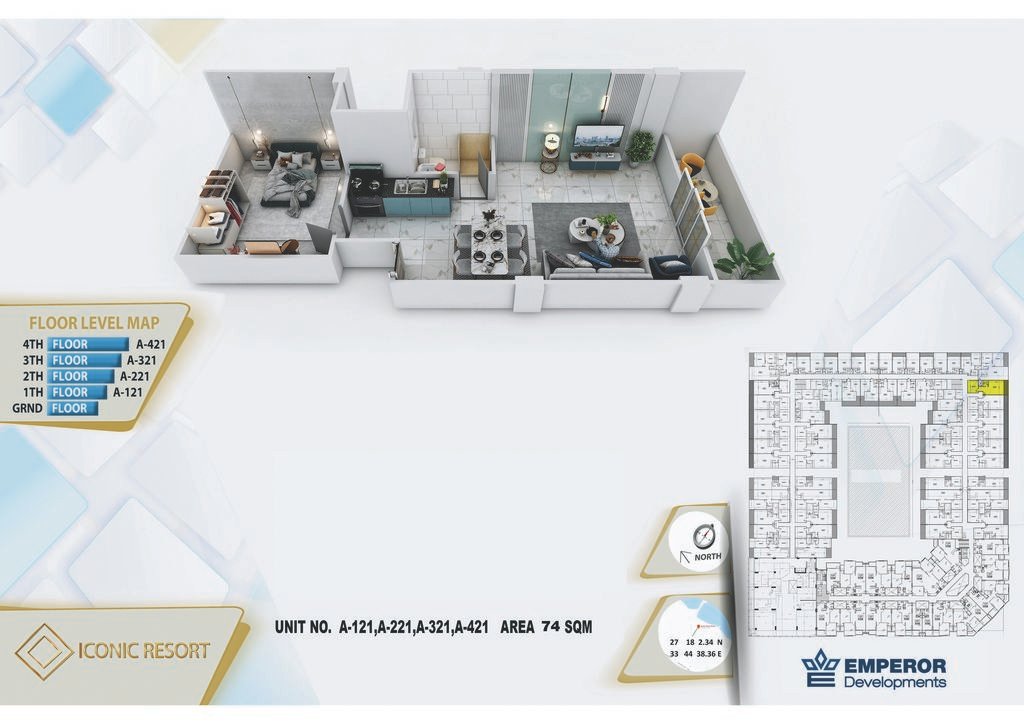 One bedroom in Iconic Resort by Emperor Developments -the apartment size 74 m²