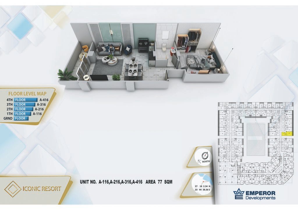 One bedroom in Iconic Resort by Emperor Developments -the apartment size 77m²