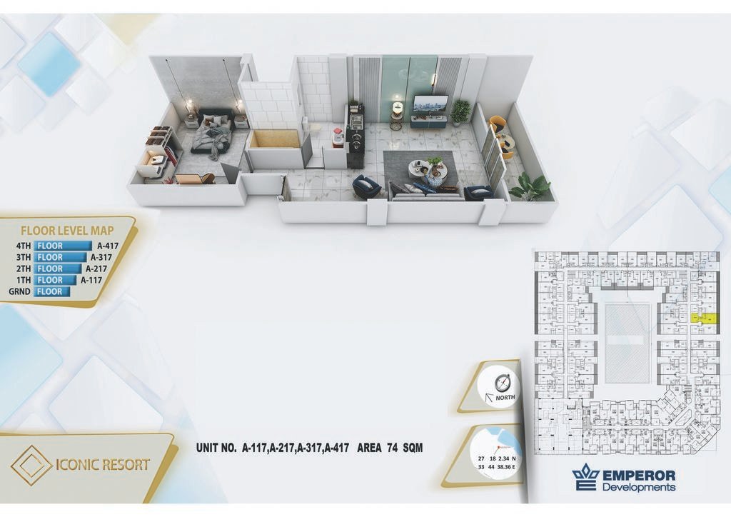 One bedroom in Iconic Resort by Emperor Developments -the apartment size 74 m²