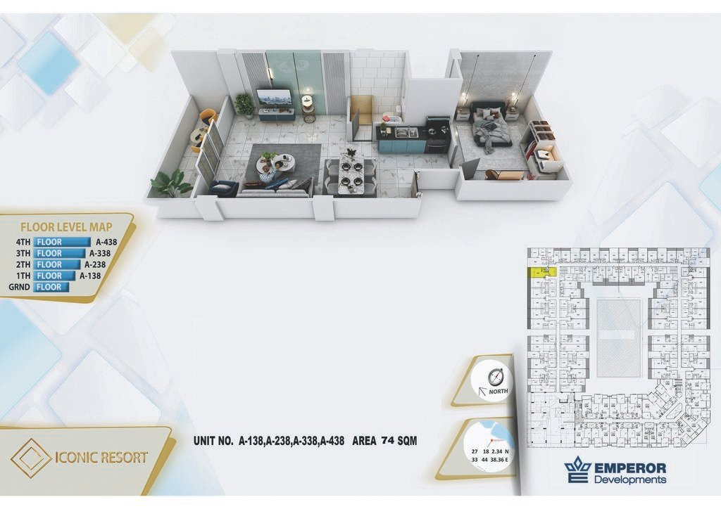 One bedroom in Iconic Resort by Emperor Developments -the apartment size 74 m²