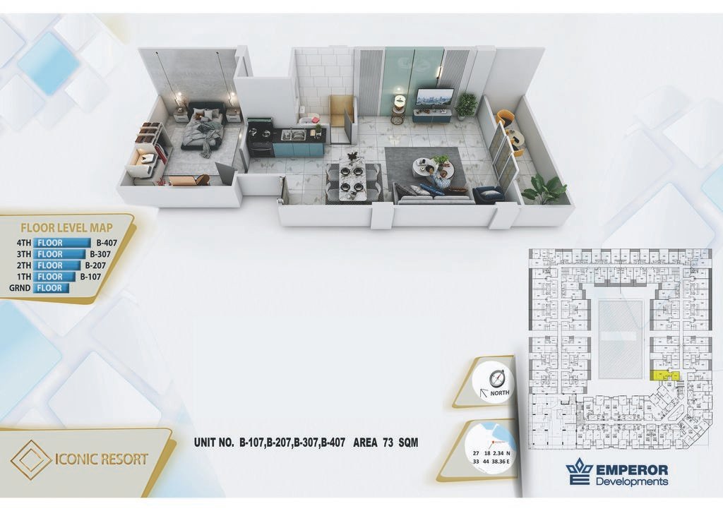 One bedroom in Iconic Resort by Emperor Developments -the apartment size 73 m²