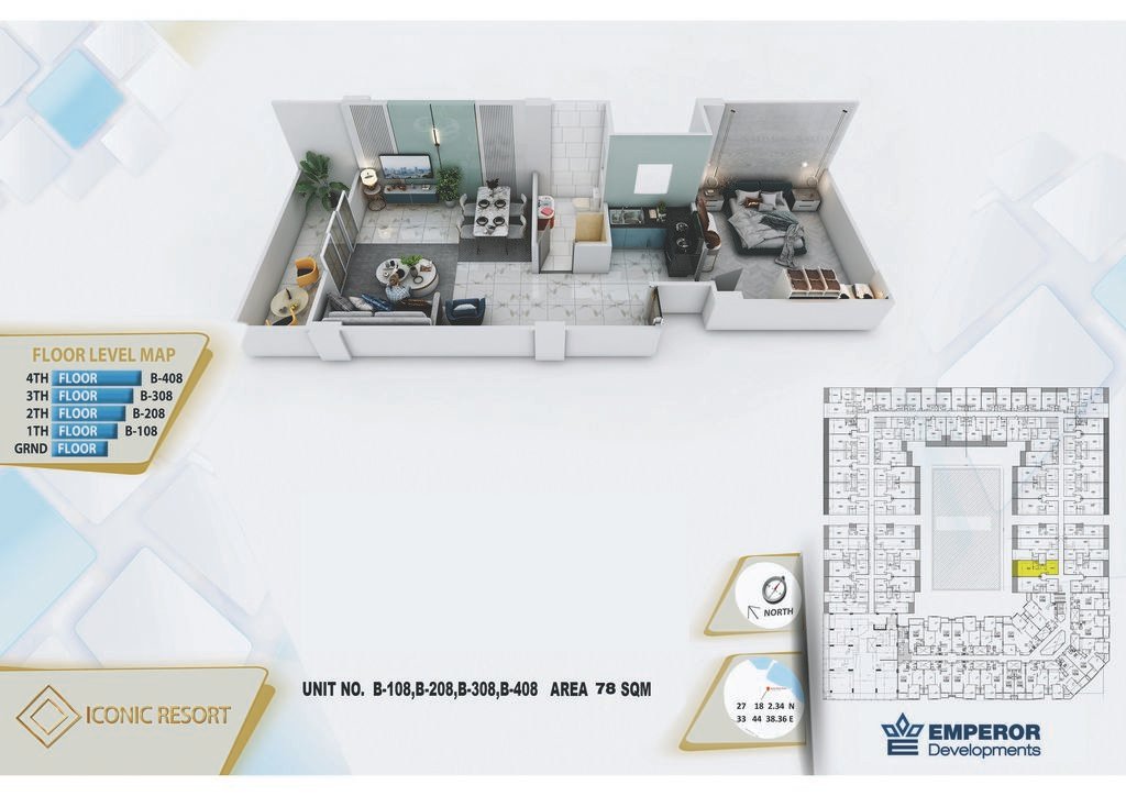 One bedroom in Iconic Resort by Emperor Developments -the apartment size 78 m²