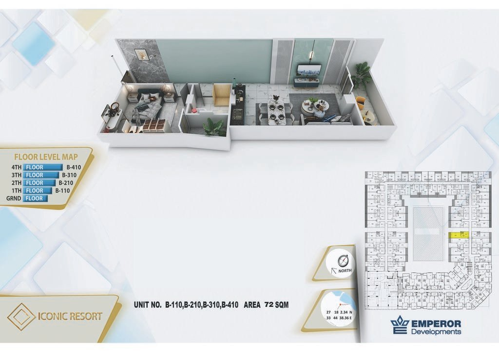 One bedroom in Iconic Resort by Emperor Developments -the apartment size 72 m²