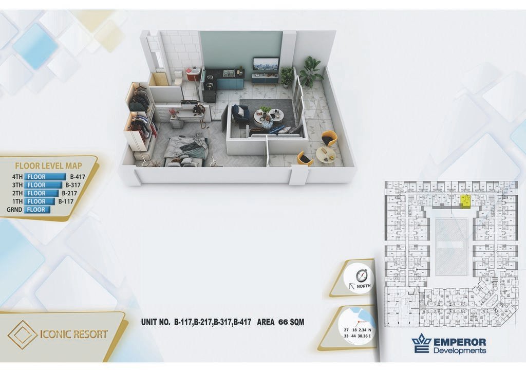 One bedroom in Iconic Resort by Emperor Developments -the apartment size 66 m²