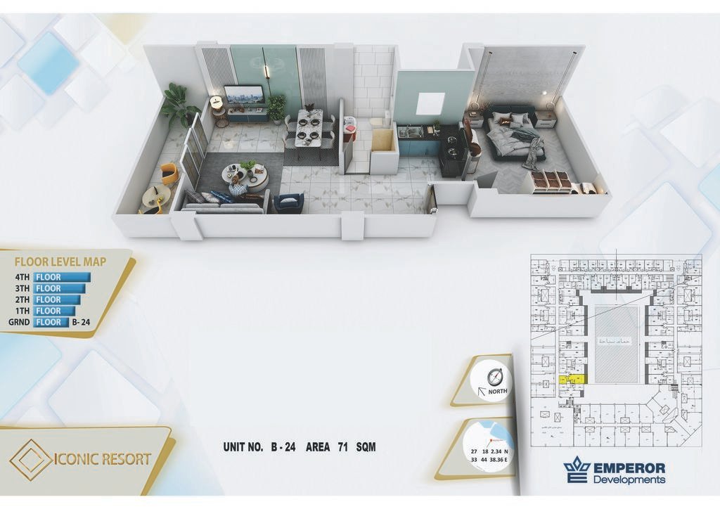 One bedroom in Iconic Resort by Emperor Developments -the apartment size 71 m²