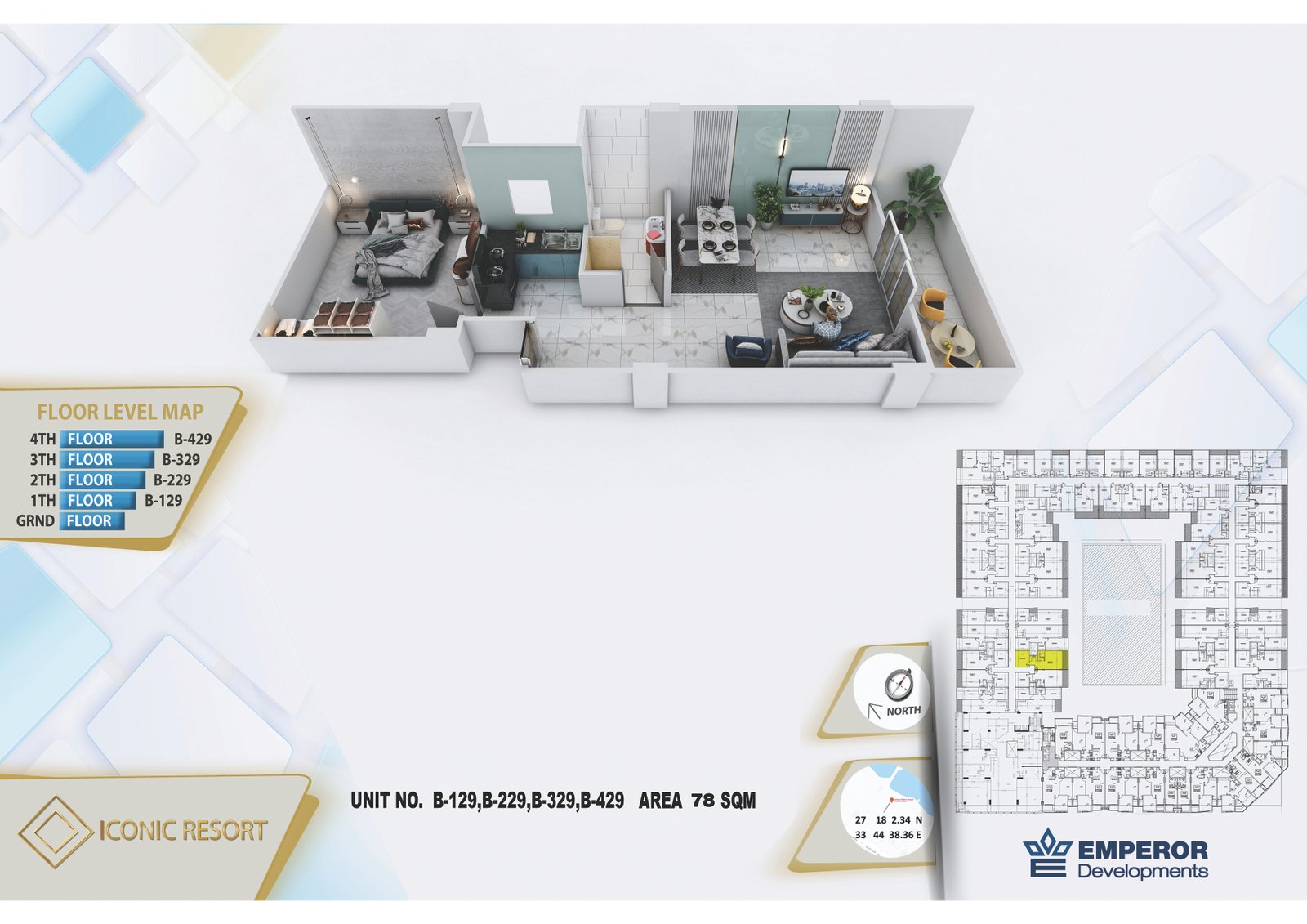 One bedroom in Iconic Resort by Emperor Developments -the apartment size 78 m²