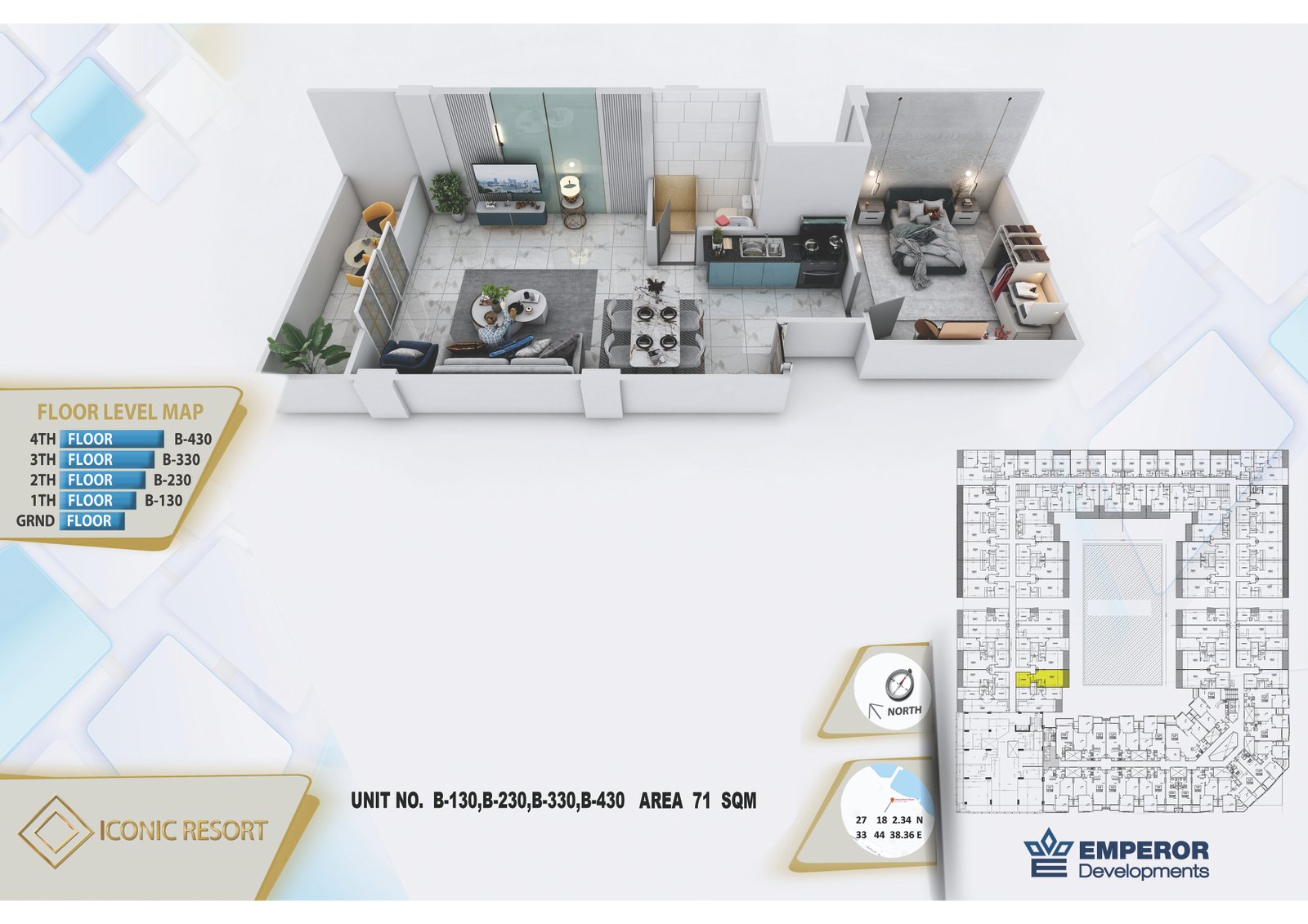 One bedroom in Iconic Resort by Emperor Developments -the apartment size 71 m²