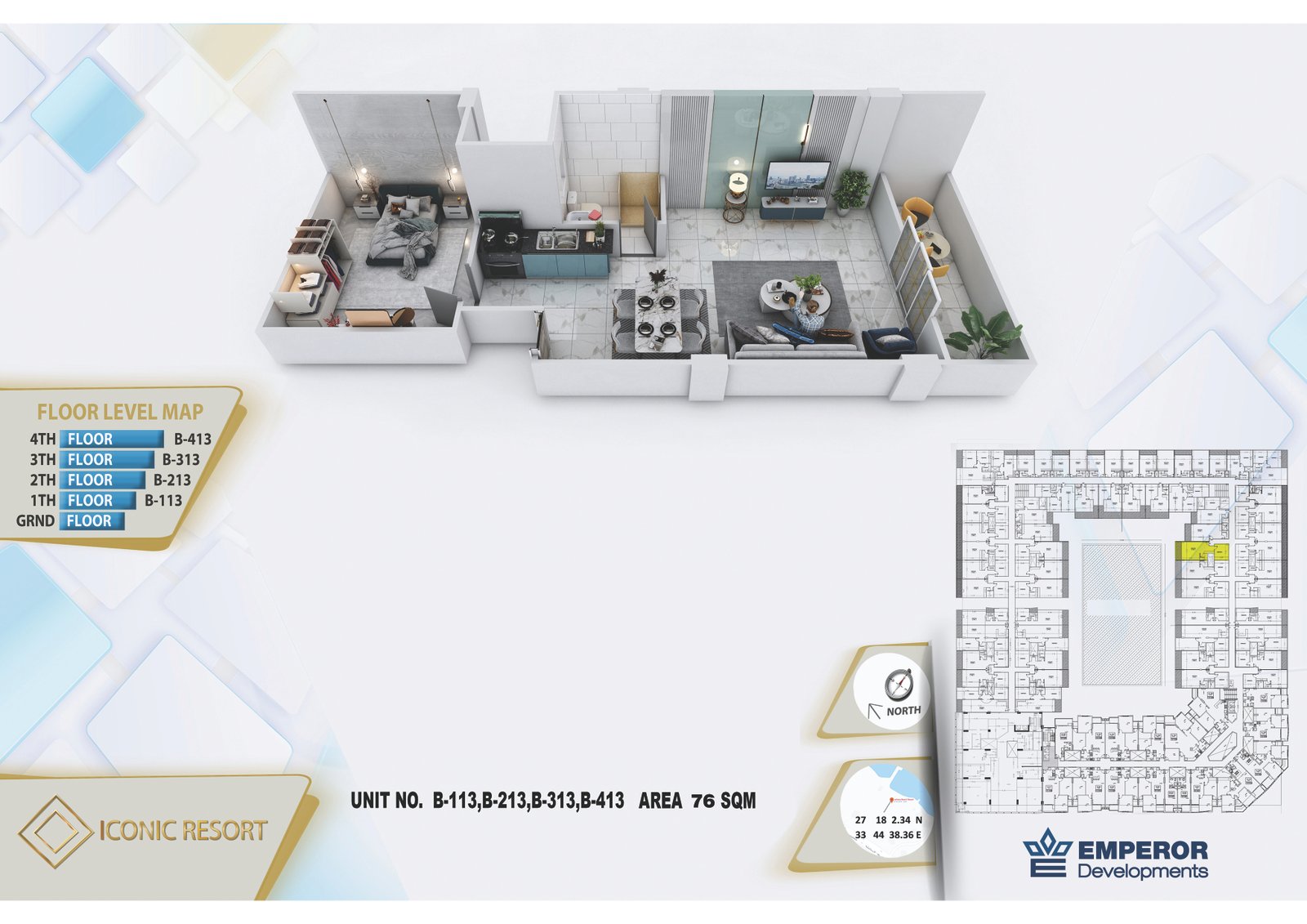 One bedroom in Iconic Resort by Emperor Developments -the apartment size 76m²