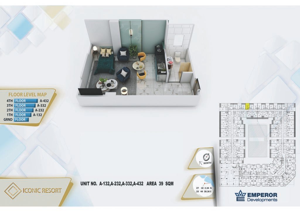 Studio in Iconic Resort by Emperor Develompments -the apartment size is 39 m²