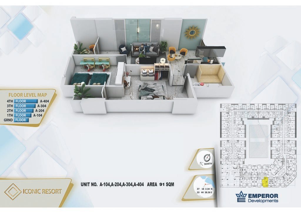 Three bedroom in Iconic Resort by Emperor Developments -the apartment size 137m²