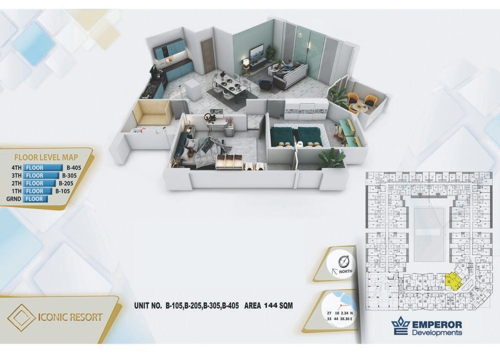 Three bedroom in Iconic Resort by Emperor Developments -the apartment size 144 m²