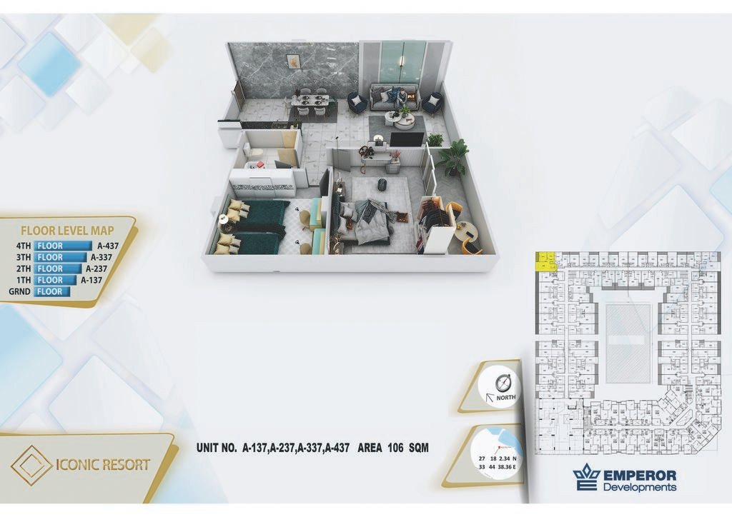 Two bedroom in Iconic Resort by Emperor Developments -the apartment size 106 m²