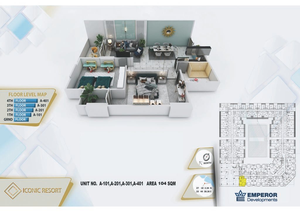 Two bedroom in Iconic Resort by Emperor Develompments -the apartment size 104m²
