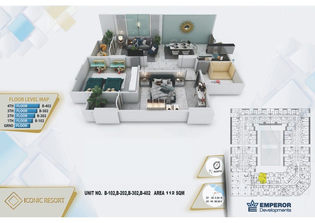Two Bedroom in Iconic Resort by Emperor Developments -the apartment size 112 m²
