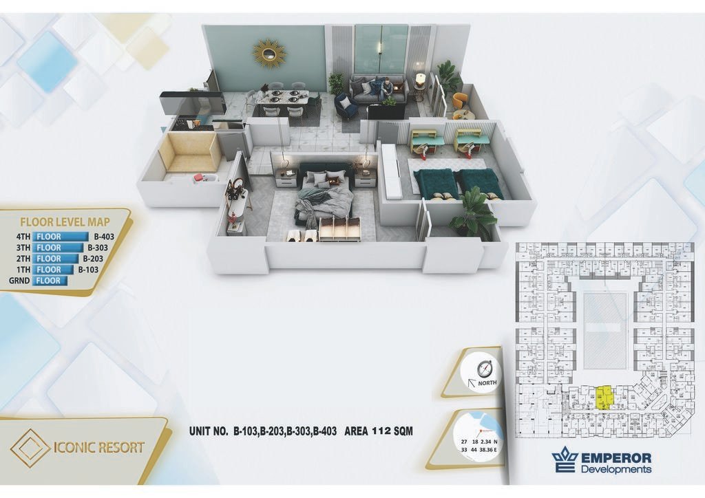 Two Bedroom in Iconic Resort by Emperor Developments -the apartment size 112 m²