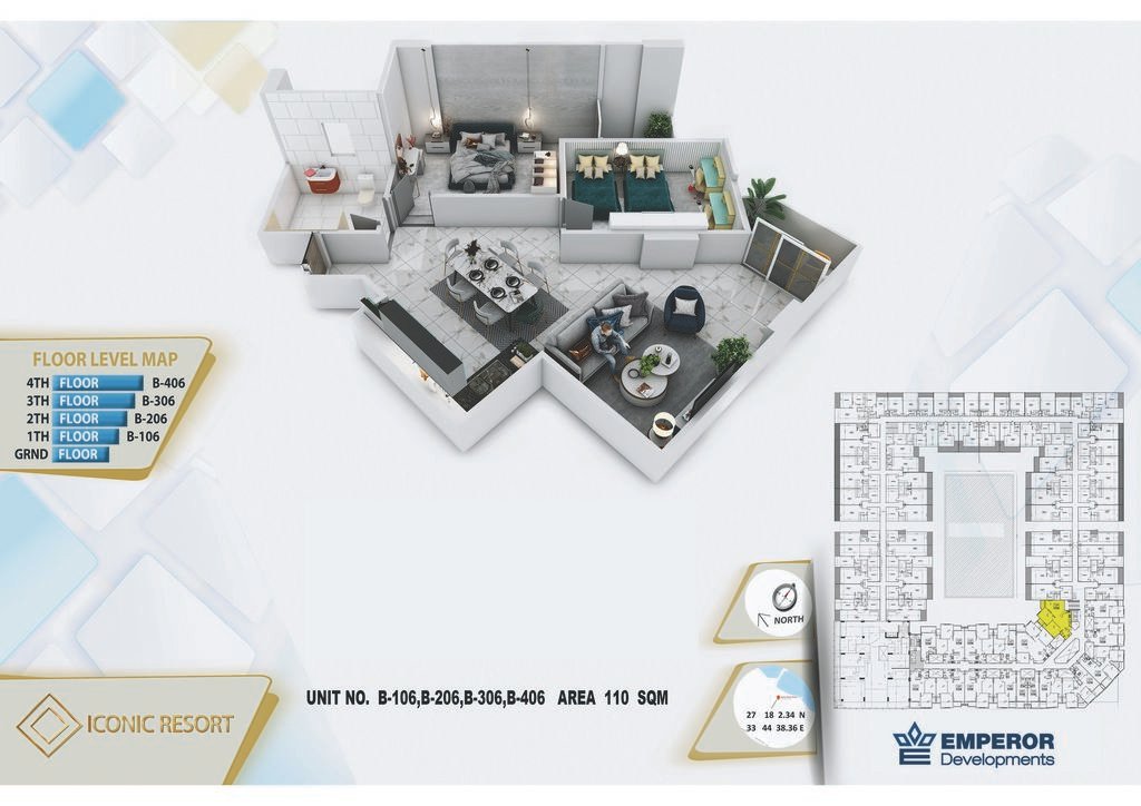 Two Bedroom in Iconic Resort by Emperor Developments -the apartment size 110 m²