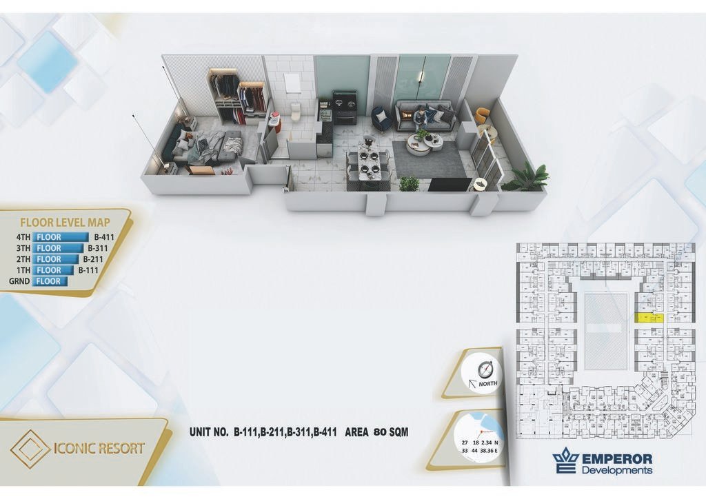 Two Bedroom in Iconic Resort by Emperor Developments -the apartment size 84 m²