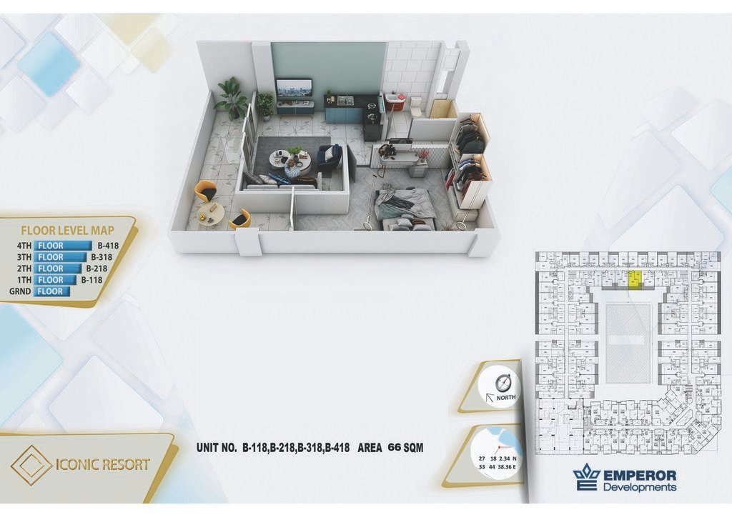 Two Bedroom in Iconic Resort by Emperor Developments -the apartment size 73 m²