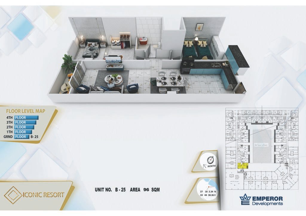 Two bedroom in Iconic Resort by Emperor Developments -the apartment size 96m²