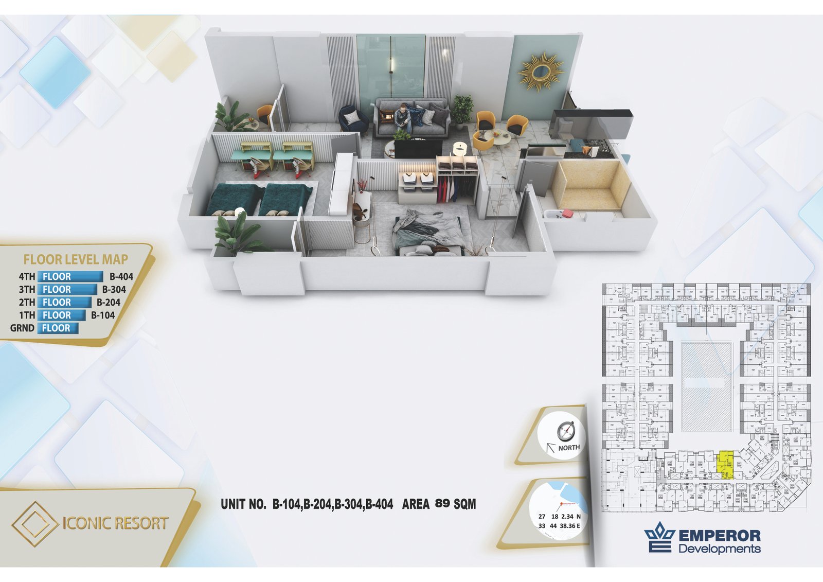 Two Bedroom in Iconic Resort by Emperor Developments -the apartment size 89 m²