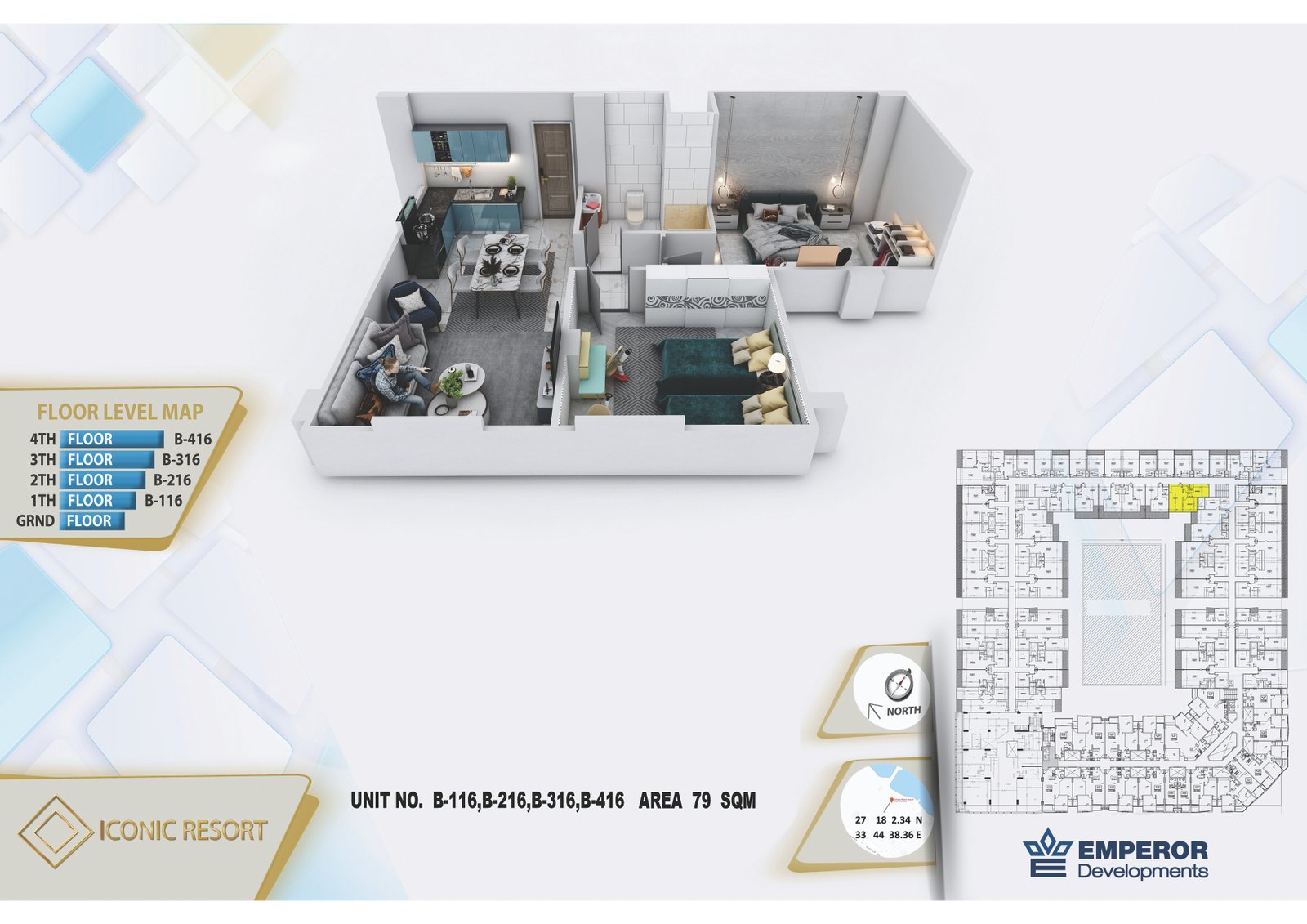 Two Bedroom in Iconic Resort by Emperor Developments -the apartment size 79 m²