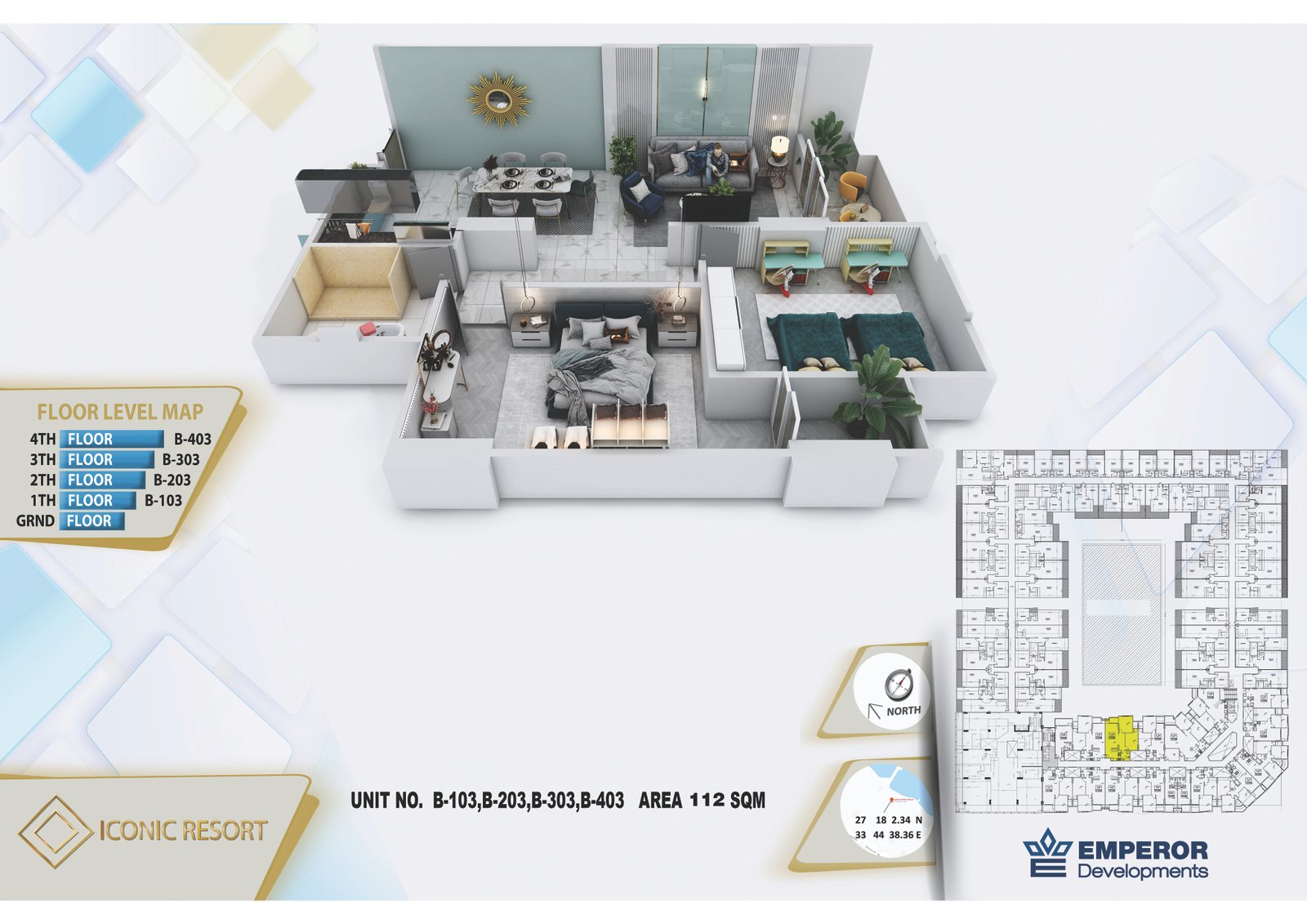 Two Bedroom in Iconic Resort by Emperor Developments -the apartment size 115 m²