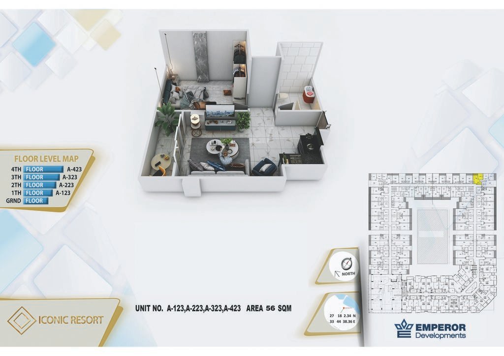 One bedroom in Iconic Resort by Emperor Developments -the apartment size 56 m²