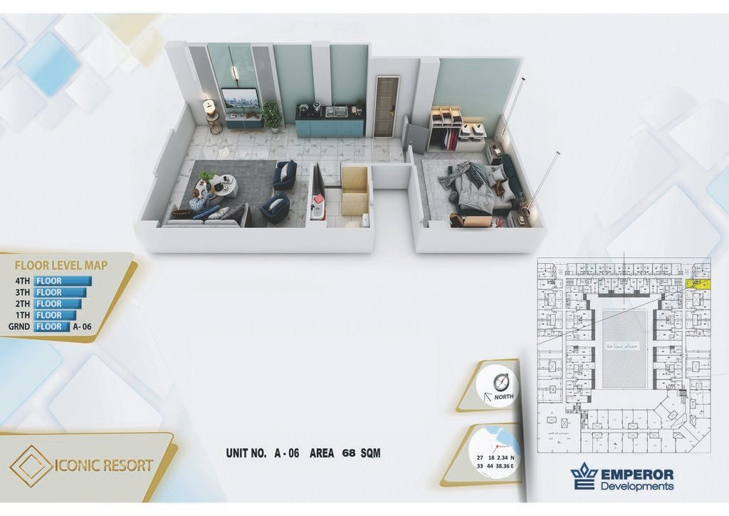 One bedroom in Iconic Resort by Emperor Developments -the apartment size 68 m²