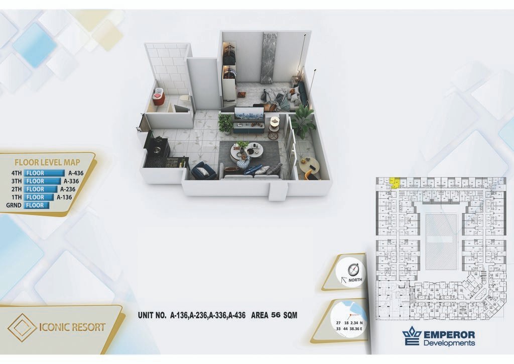 One bedroom in Iconic Resort by Emperor Developments -the apartment size 56 m²