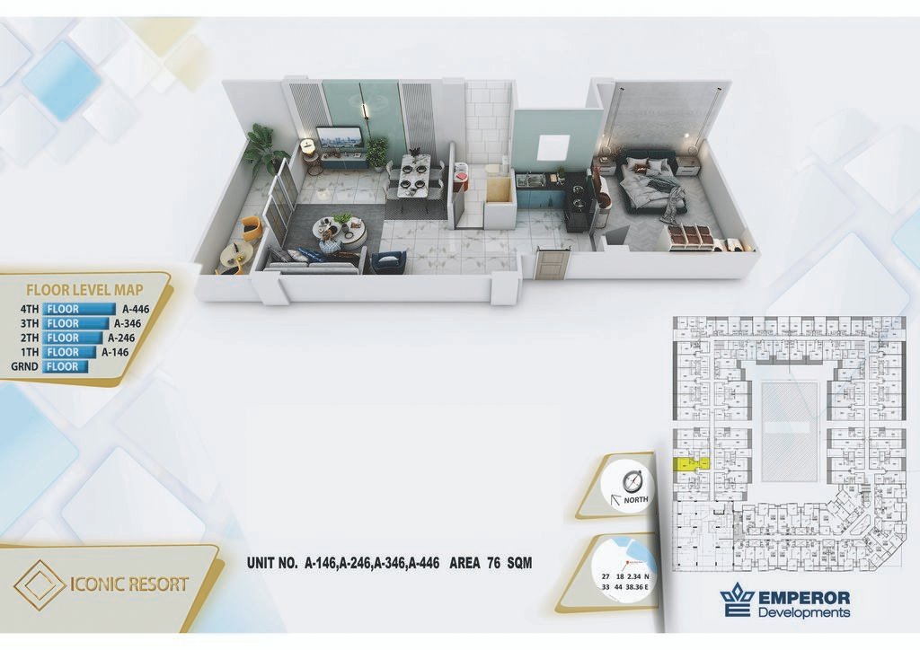 One bedroom in Iconic Resort by Emperor Developments -the apartment size 76 m²