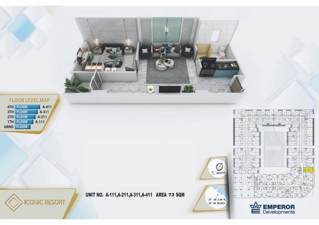 One bedroom in Iconic Resort by Emperor Developments -the apartment size 73 m²