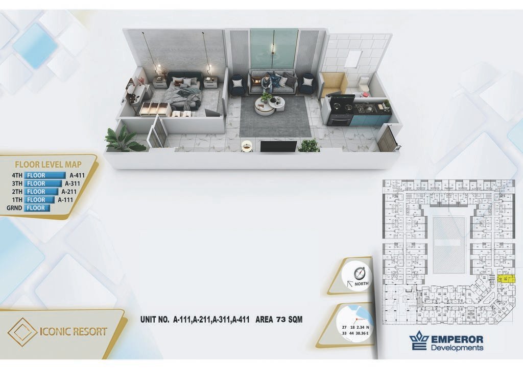 One bedroom in Iconic Resort by Emperor Developments -the apartment size 73m²