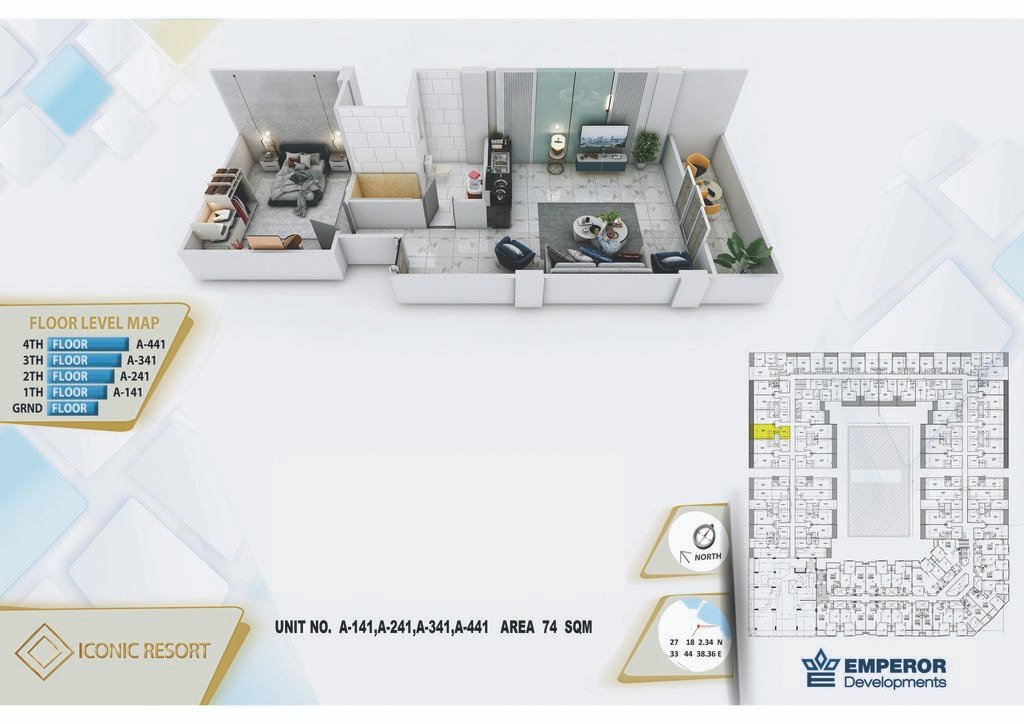 One bedroom in Iconic Resort by Emperor Developments -the apartment size 74 m²