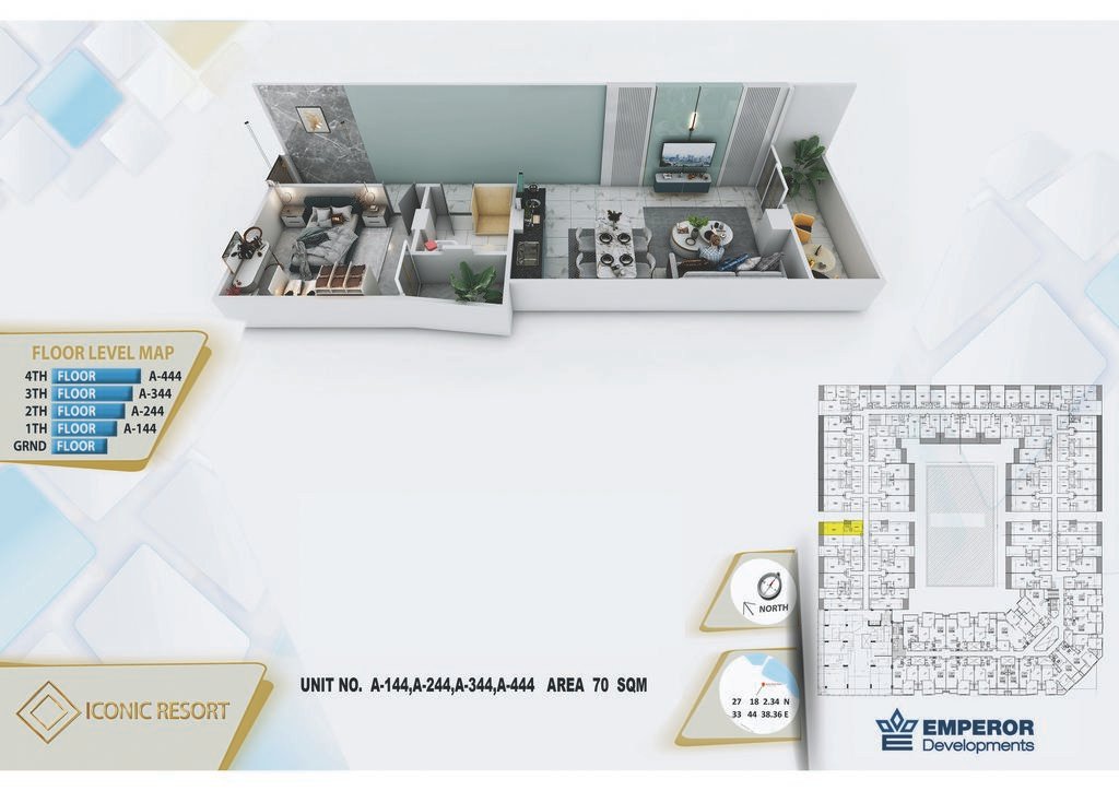 One bedroom in Iconic Resort by Emperor Developments -the apartment size 70 m²