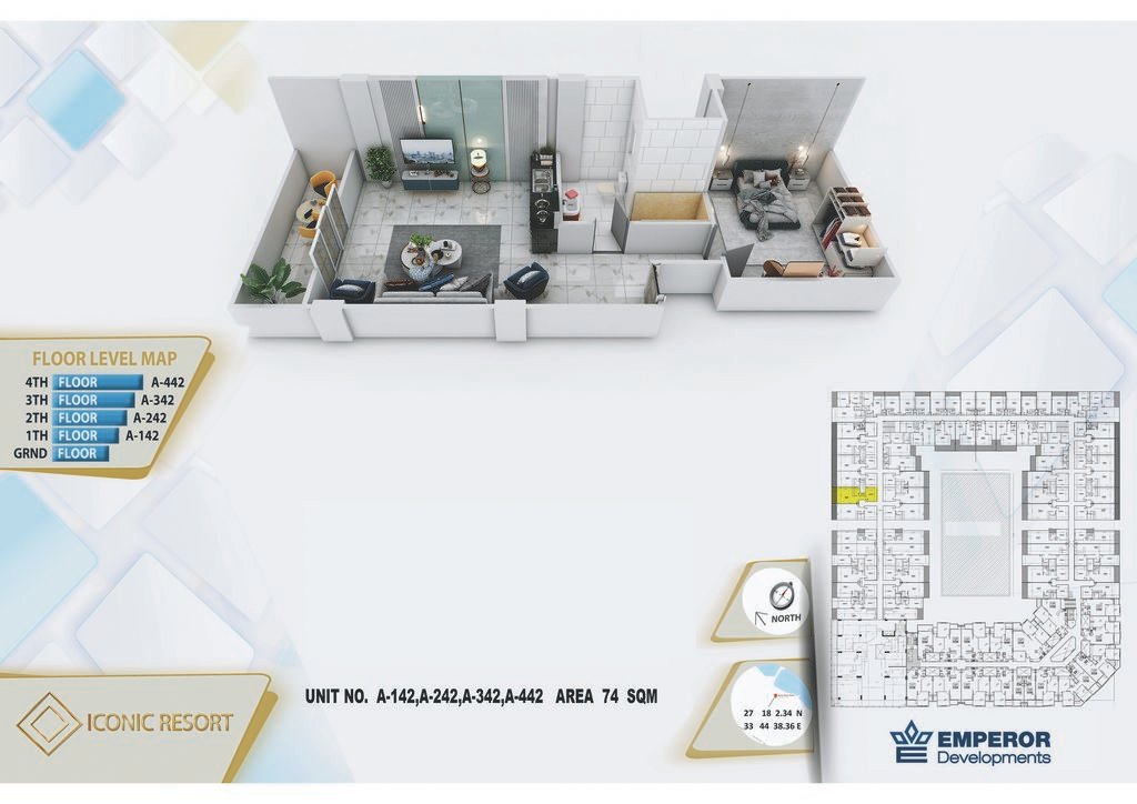 One bedroom in Iconic Resort by Emperor Developments -the apartment size 74 m²