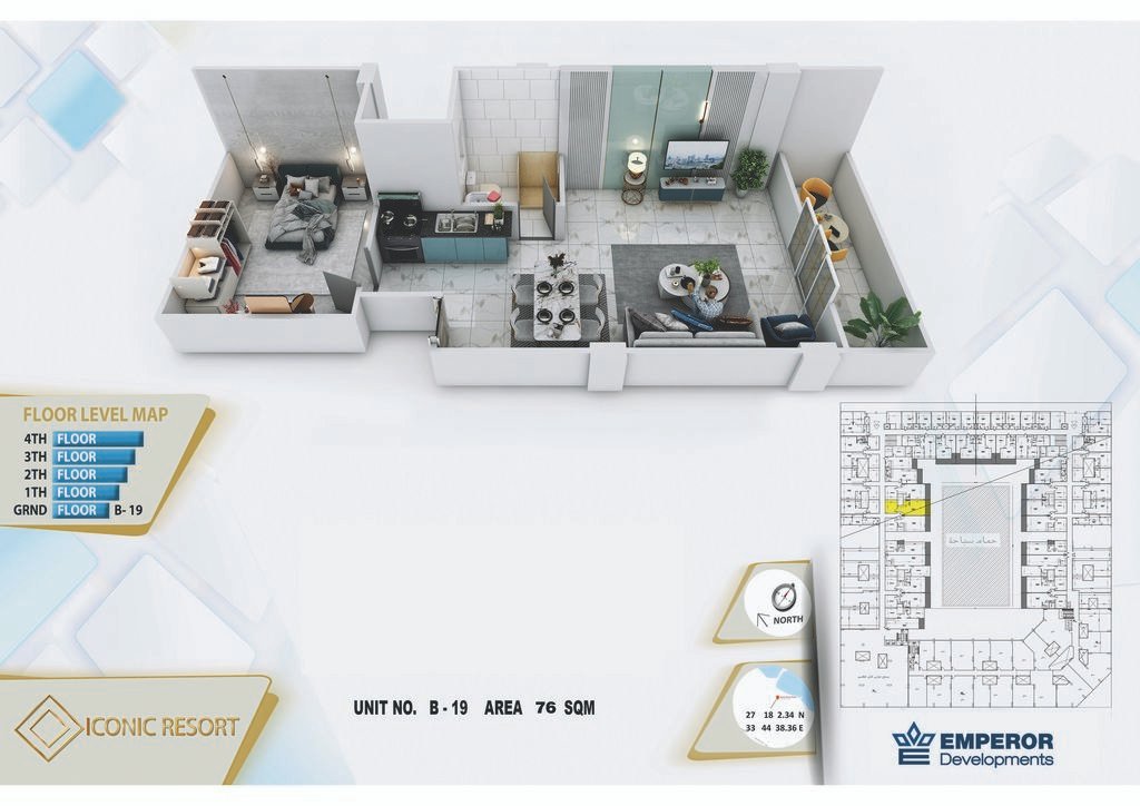 One bedroom in Iconic Resort by Emperor Developments -the apartment size 76 m²