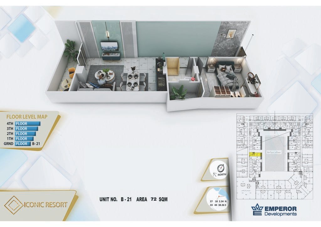 One bedroom in Iconic Resort by Emperor Developments -the apartment size 74 m²