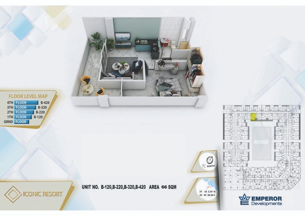 One bedroom in Iconic Resort by Emperor Developments -the apartment size 66 m²