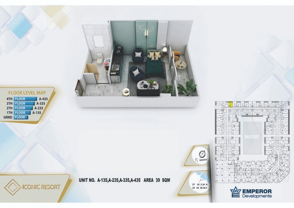 Studio in Iconic Resort by Emperor Develompments -the apartment size is 39 m²