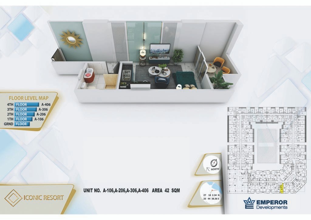Studio in Iconic Resort by Emperor Developments -the apartment size 45 m²