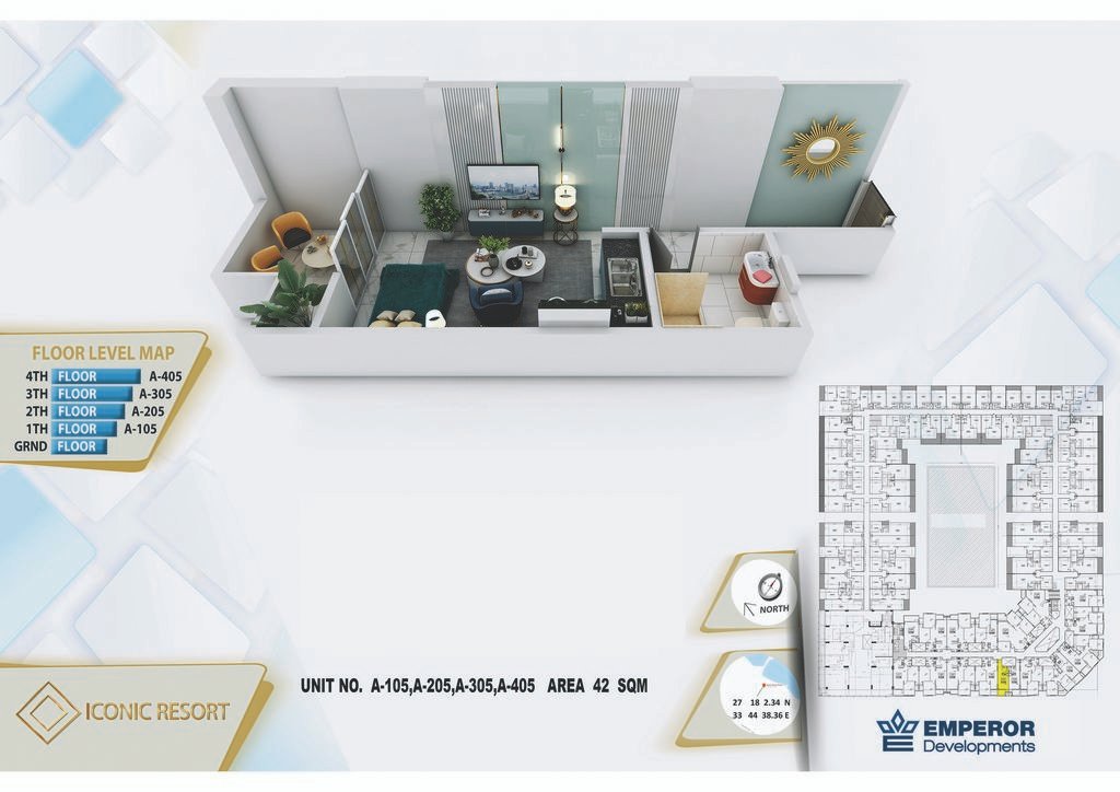 Studio in Iconic Resort by Emperor Developments -the apartment size is 45m²