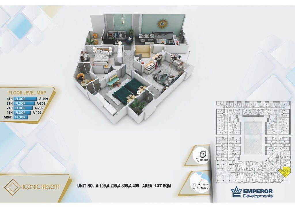 Three bedroom in Iconic Resort by Emperor Developments -the apartment size137 m²