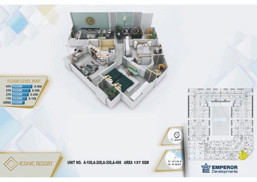 Three bedroom in Iconic Resort by Emperor Developments -the apartment size137 m²