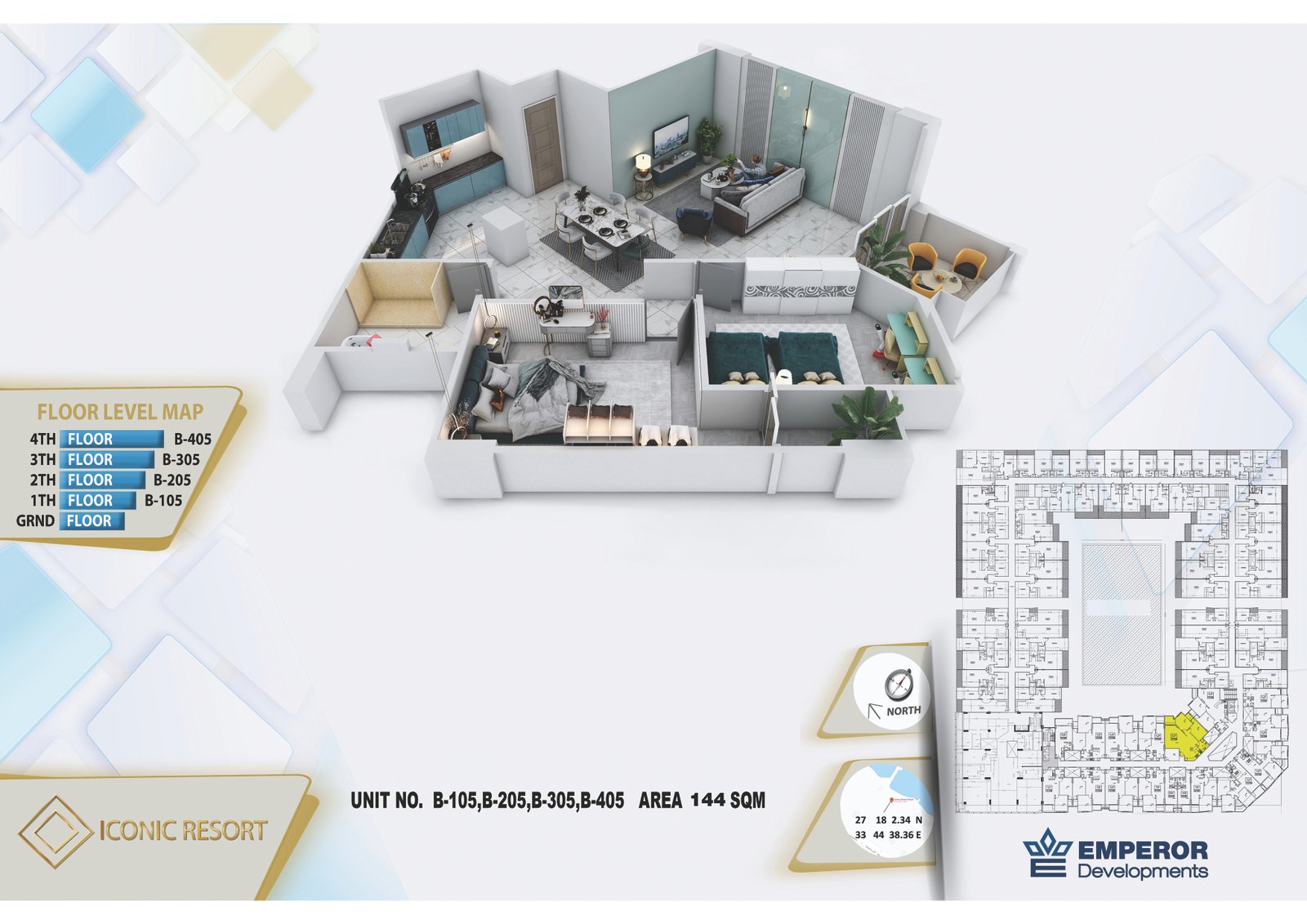 Three bedroom in Iconic Resort by Emperor Developments -the apartment size 144 m²