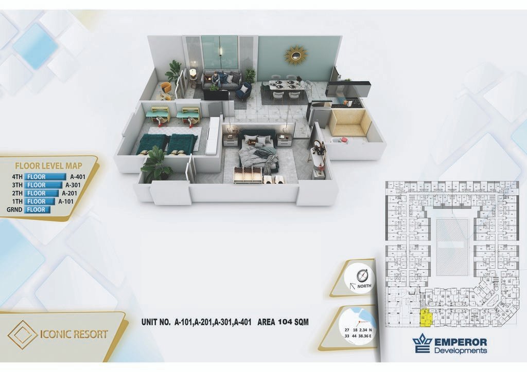 Two Bedroom in Iconic Resort by Emperor develompments -the apartment size 104 m²