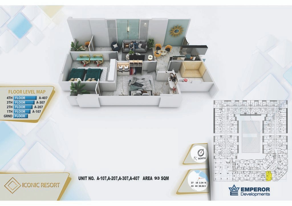Two Bedroom in Iconic Resort by Emperor develompments -the apartment size 93 m²